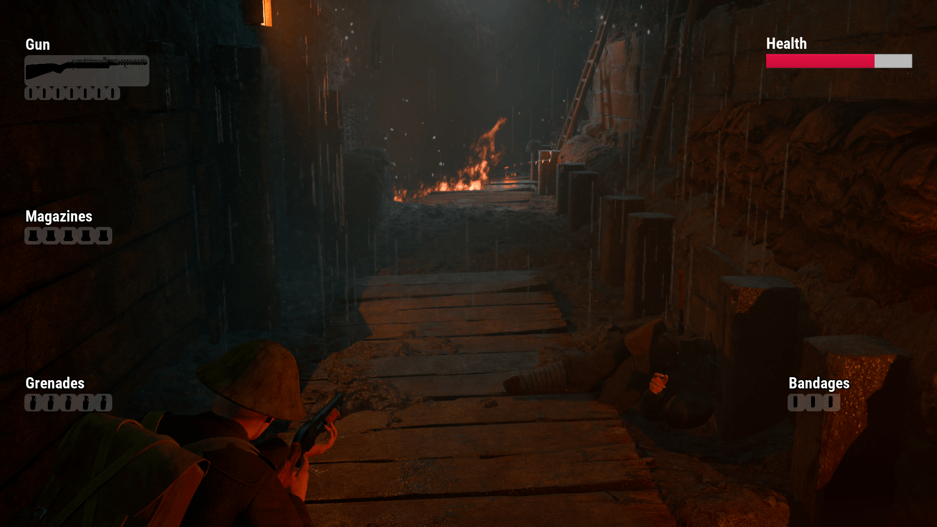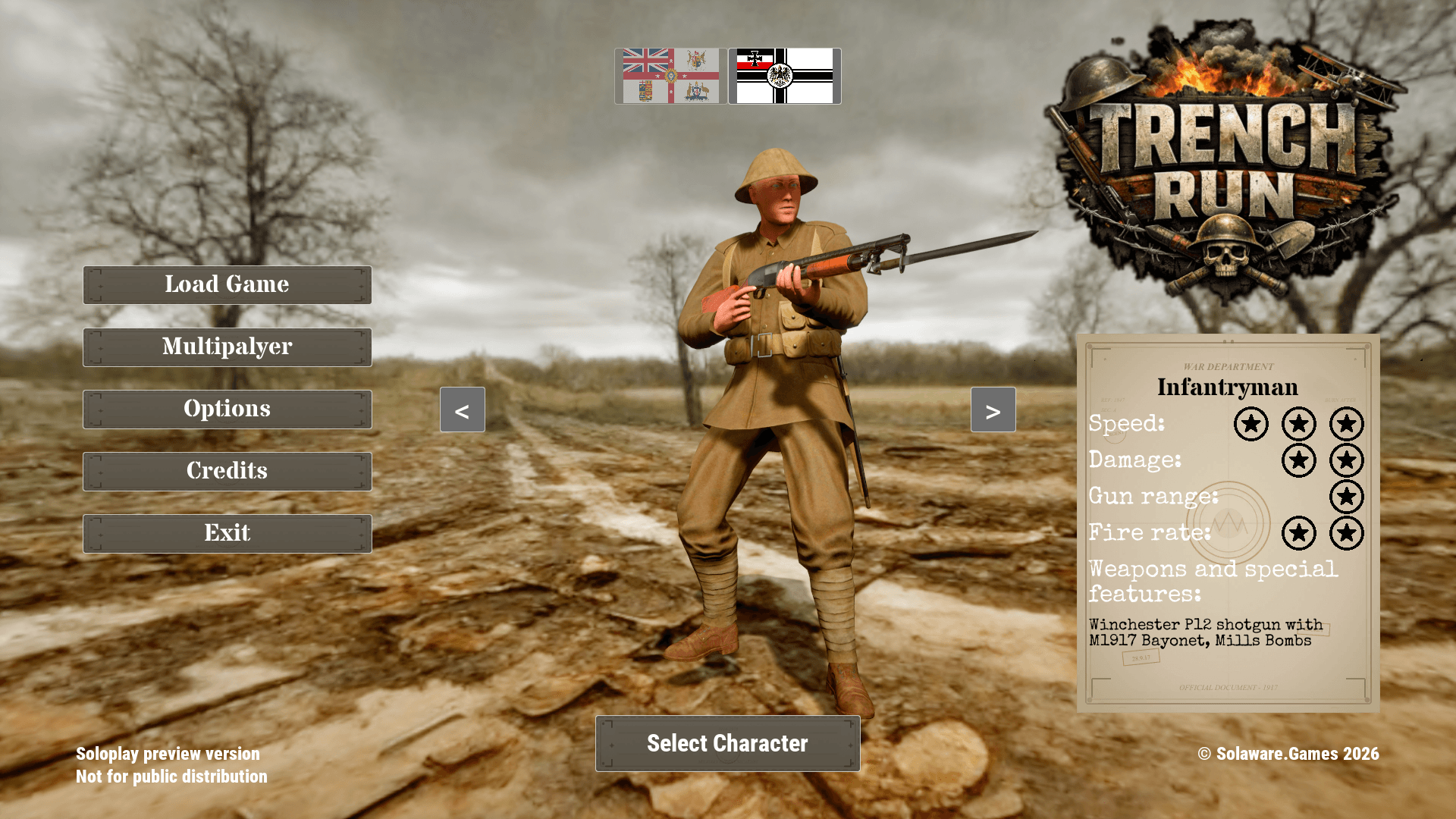 Fight through claustrophobic trench networks under constant artillery pressure. Every run is a desperate push into enemy lines.